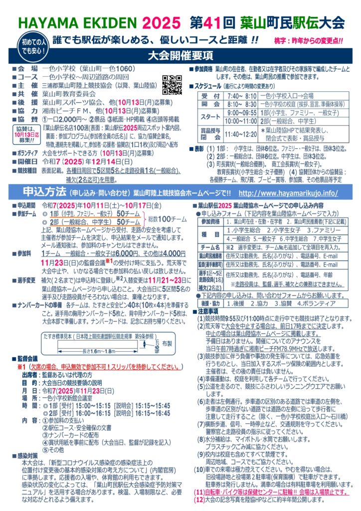 葉山駅伝2025は、町広報10月号などに掲載されているように12月14日に開催される。申込みは10月11日から17日まで、葉山町陸上競技協会ホームページで行う。前回も100チームの募集であったが、133チームが参加した。